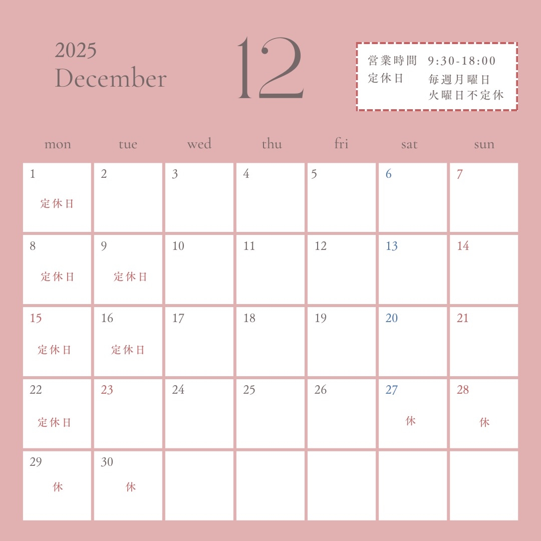 12月のお休み表です