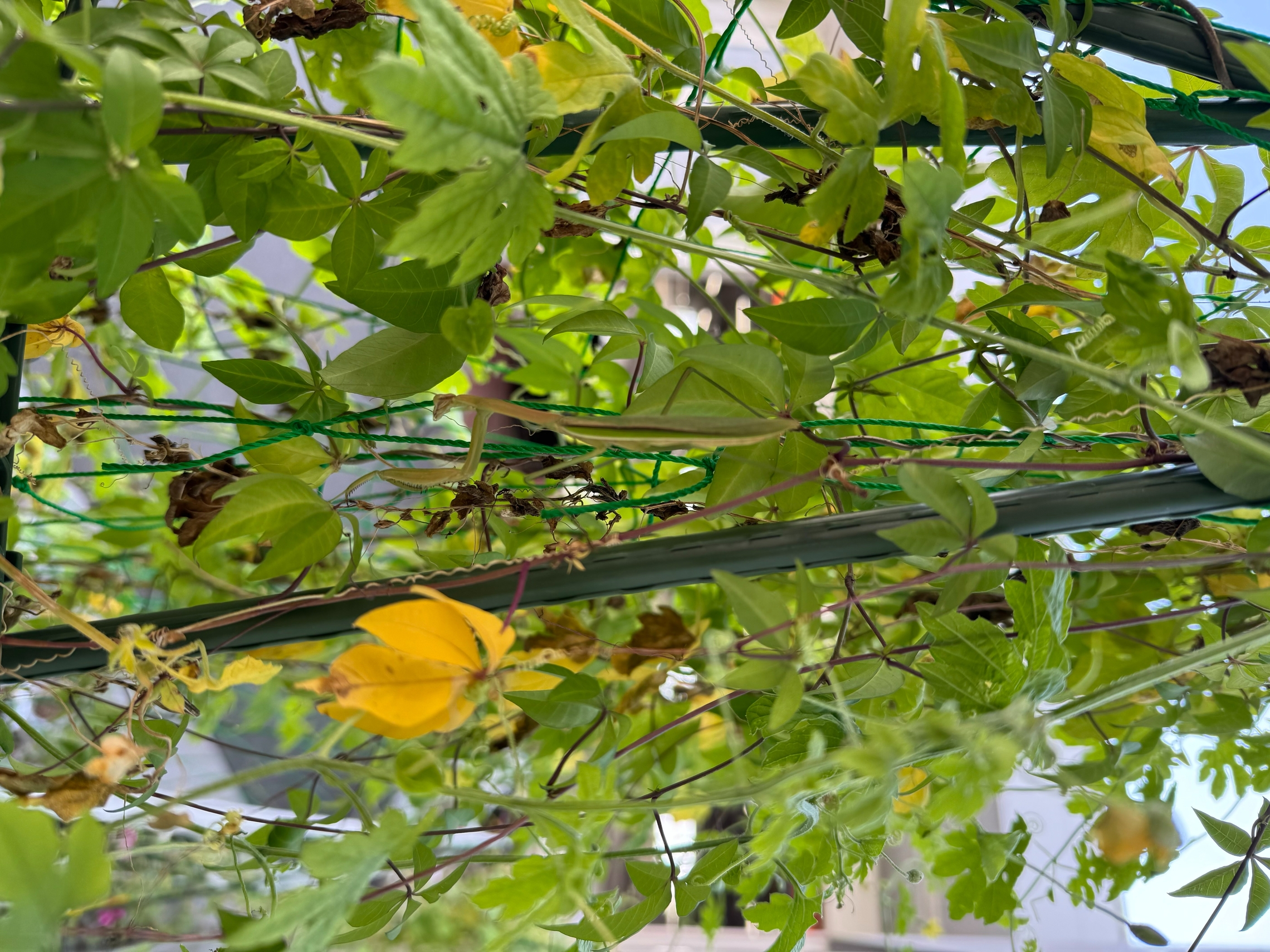 P.S.緑のカーテンに住み着いた赤ちゃんカマキリが大きくなりました💚