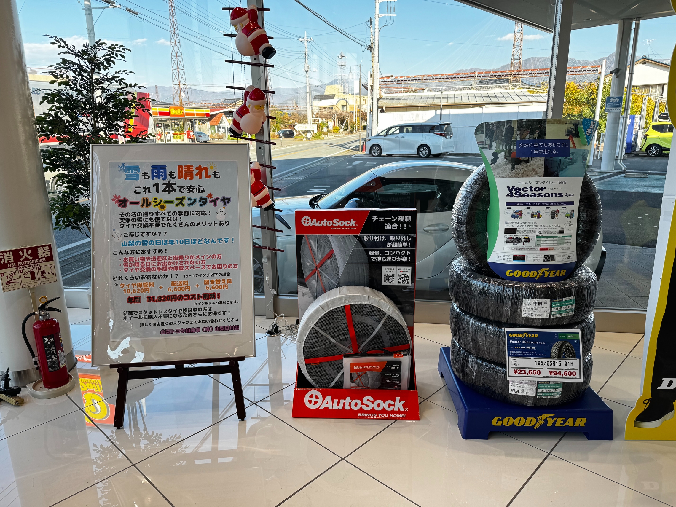 スタッドレス・オールシーズンタイヤを展示中です🛞