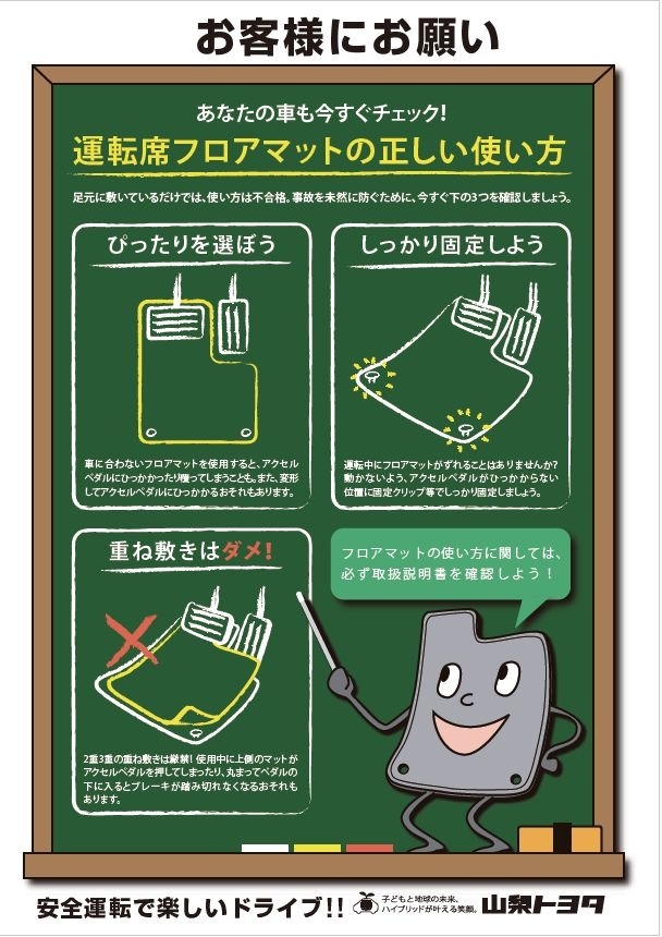 純正マット+ゴムマットのようにフロアマットを重ねて敷くことは危険です。