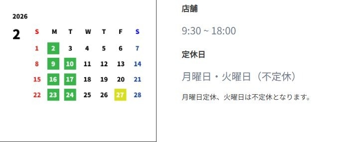 2月定休日のお知らせです
