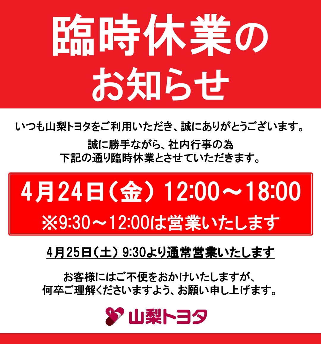 臨時休業のお知らせ